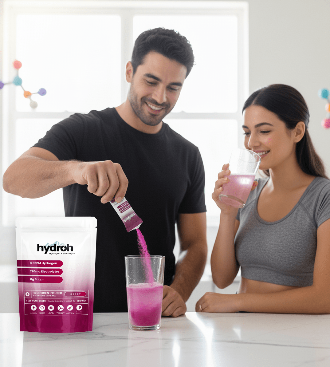 Hydrogen electrolytes combine traditional electrolyte minerals with molecular hydrogen, which acts as a powerful antioxidant to support hydration, reduce oxidative stress, and enhance recovery.